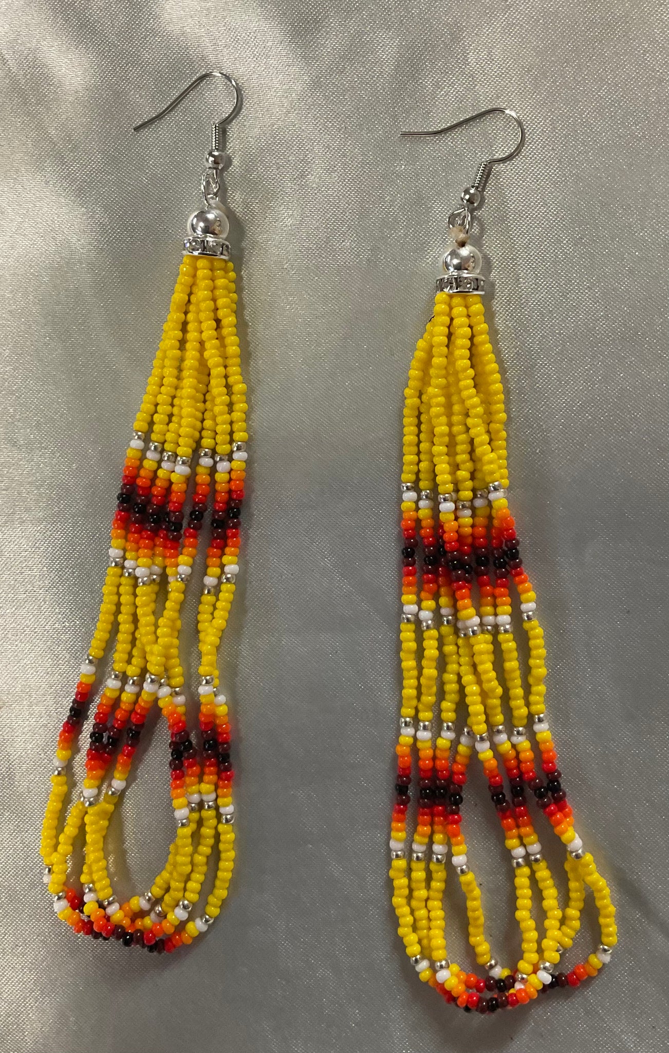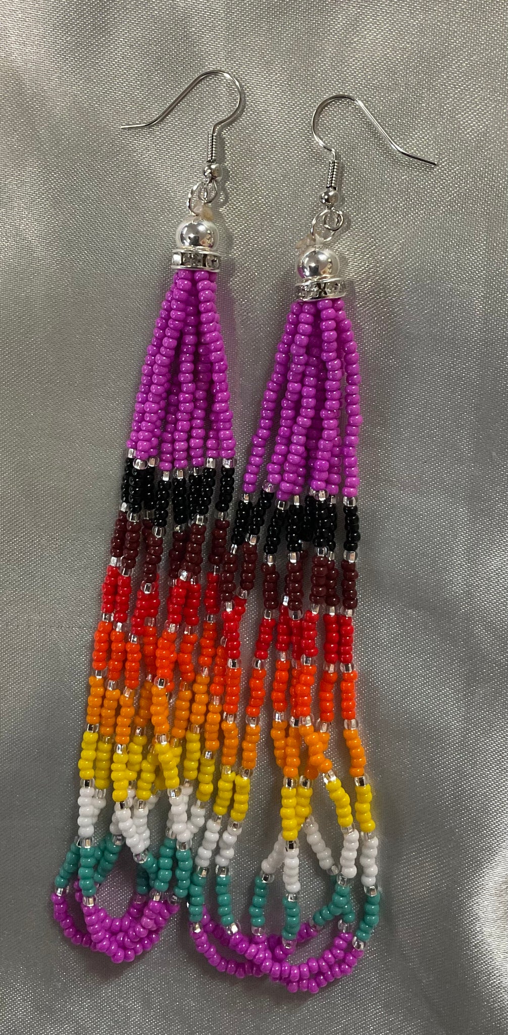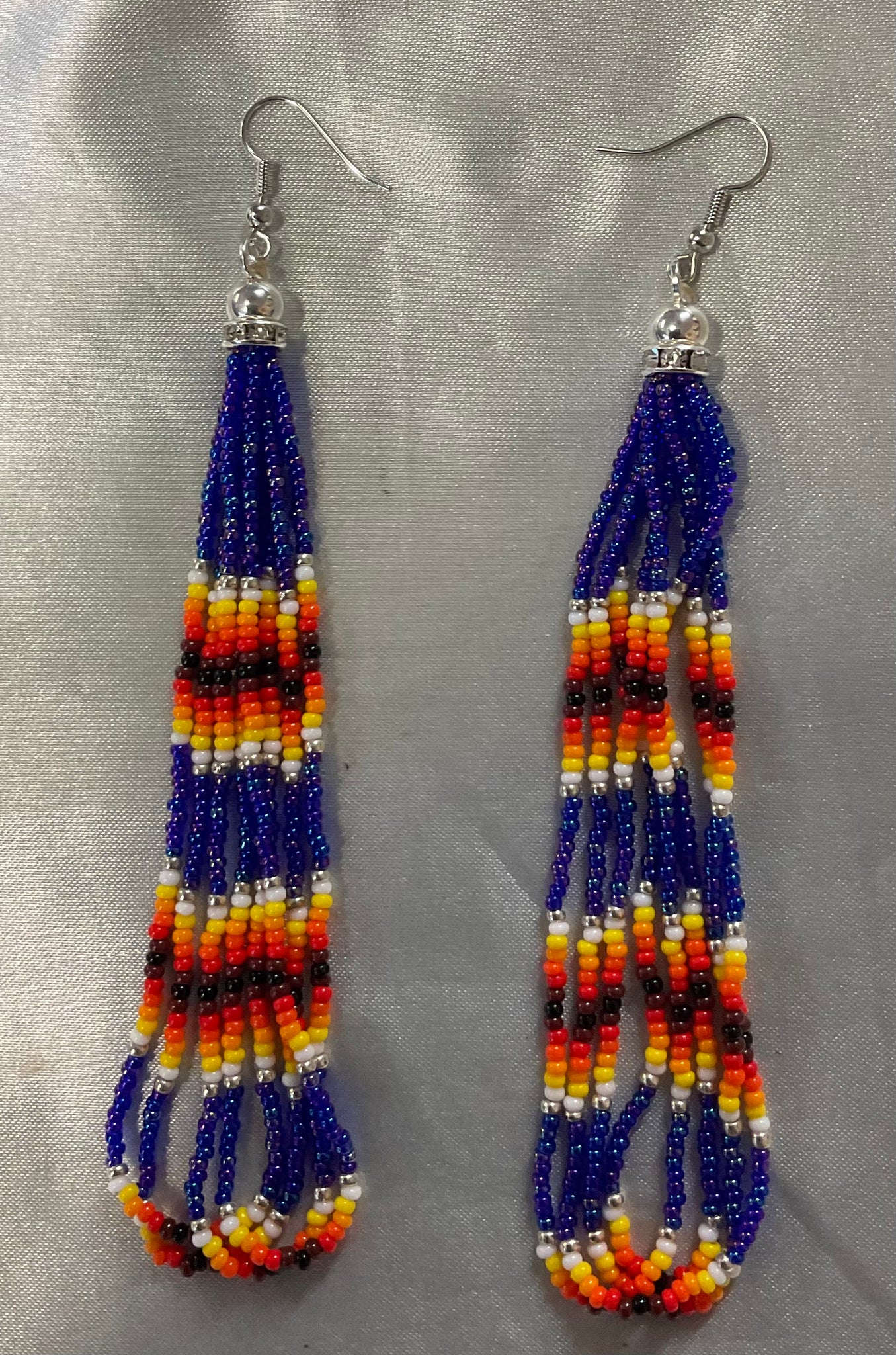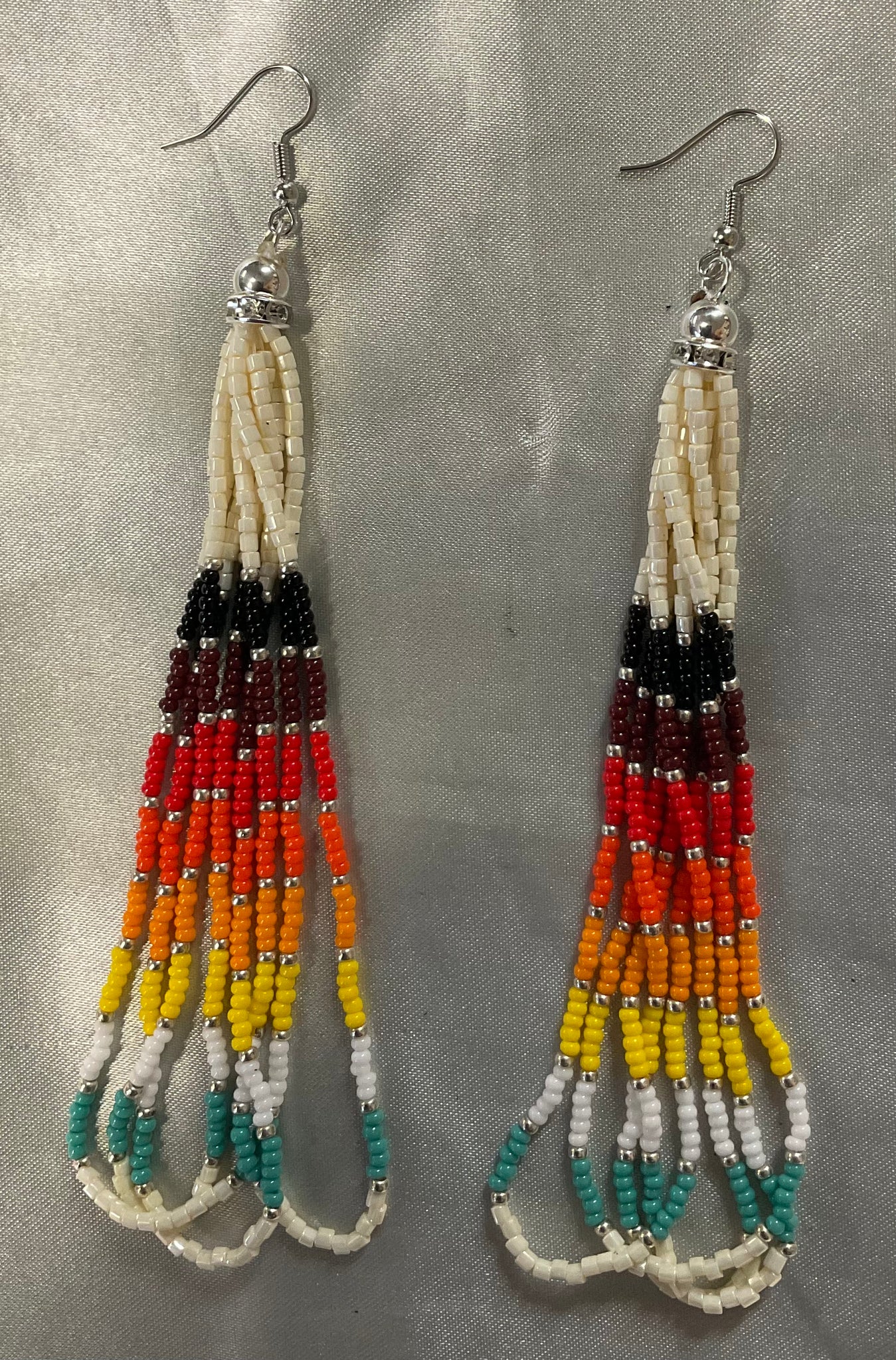 Add a touch of Native American culture to your jewelry collection with these stunning, hand-beaded dangle earrings. Each unique piece is carefully crafted by Native American artisans, providing a beautiful and authentic addition to any outfit. Elevate your style with these beautiful earrings.
