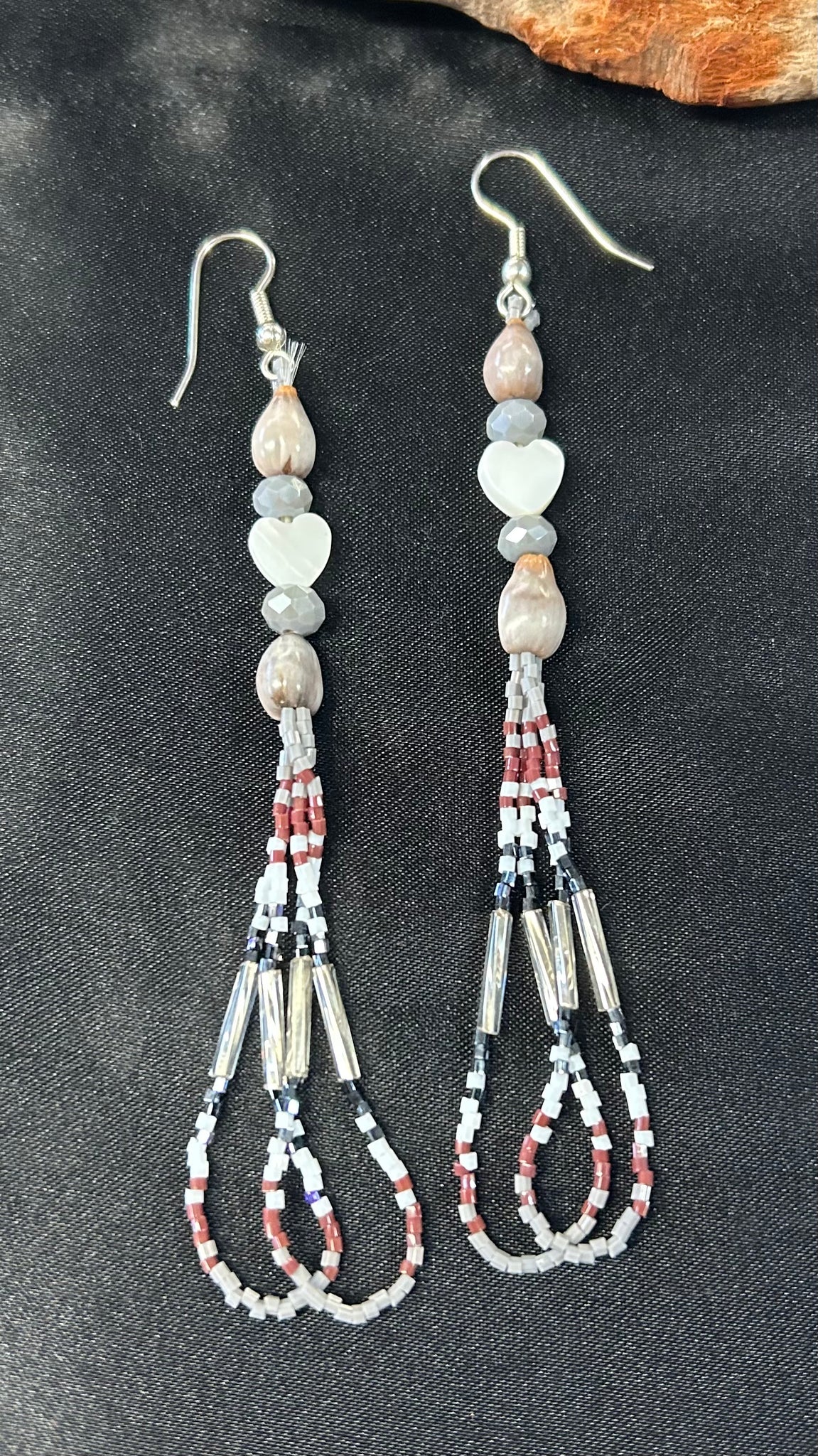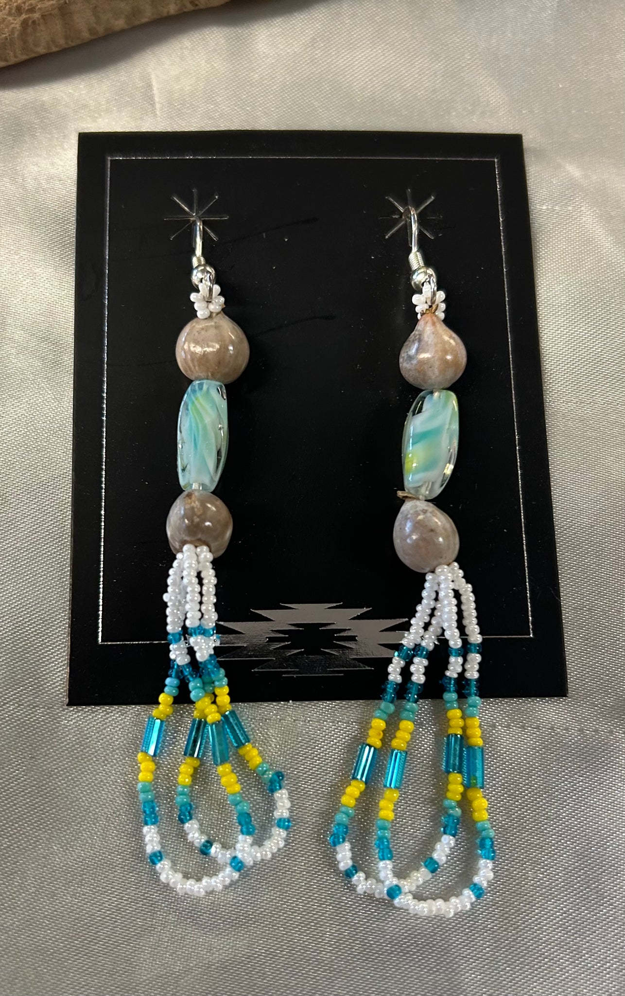 Add a touch of culture to your style with our beautifully crafted Corn Bead Dangle Earrings. Handmade by Native American artisans, these earrings feature intricate corn bead designs. Elevate your outfit and support indigenous communities with these unique earrings.