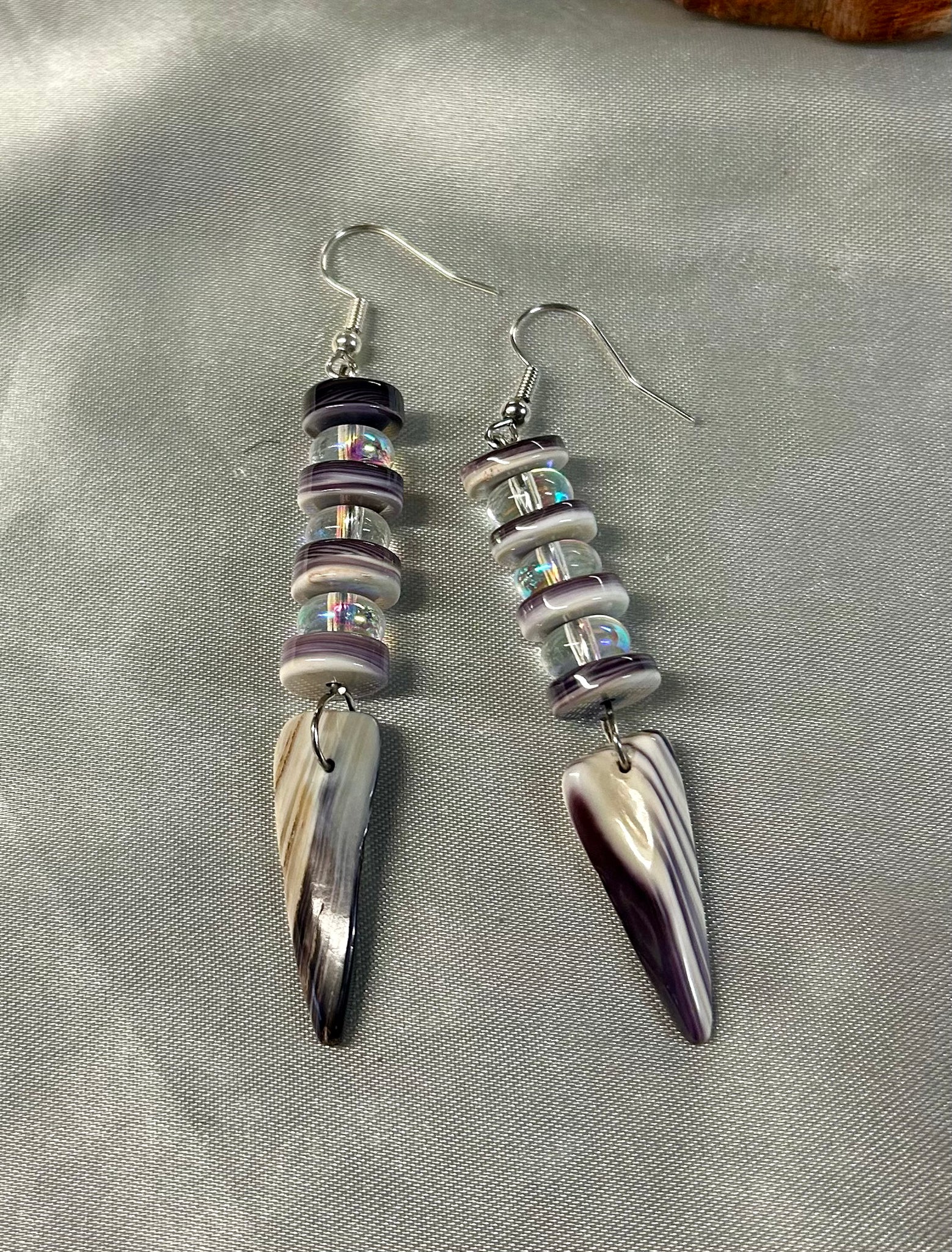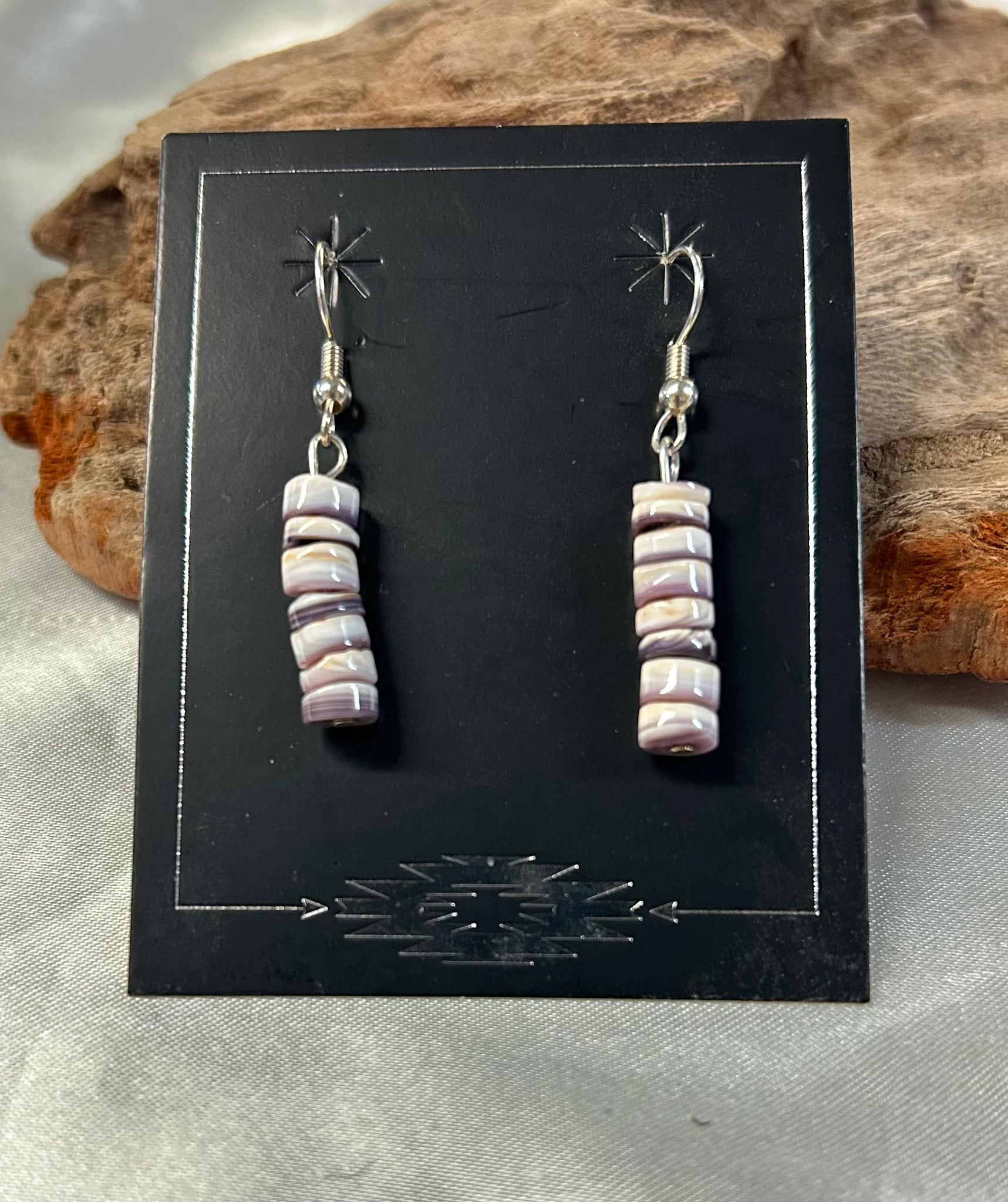 Celebrate Native American craftsmanship with these authentic wampam shell dangle earrings. Handcrafted using traditional materials, each pair honors the cultural heritage and artistry of Native American artisans. The lustrous wampam shells catch the light beautifully, creating an elegant accessory that tells a story. Perfect for those who appreciate authentic indigenous art and want to support Native American makers. Wear with pride and purpose.