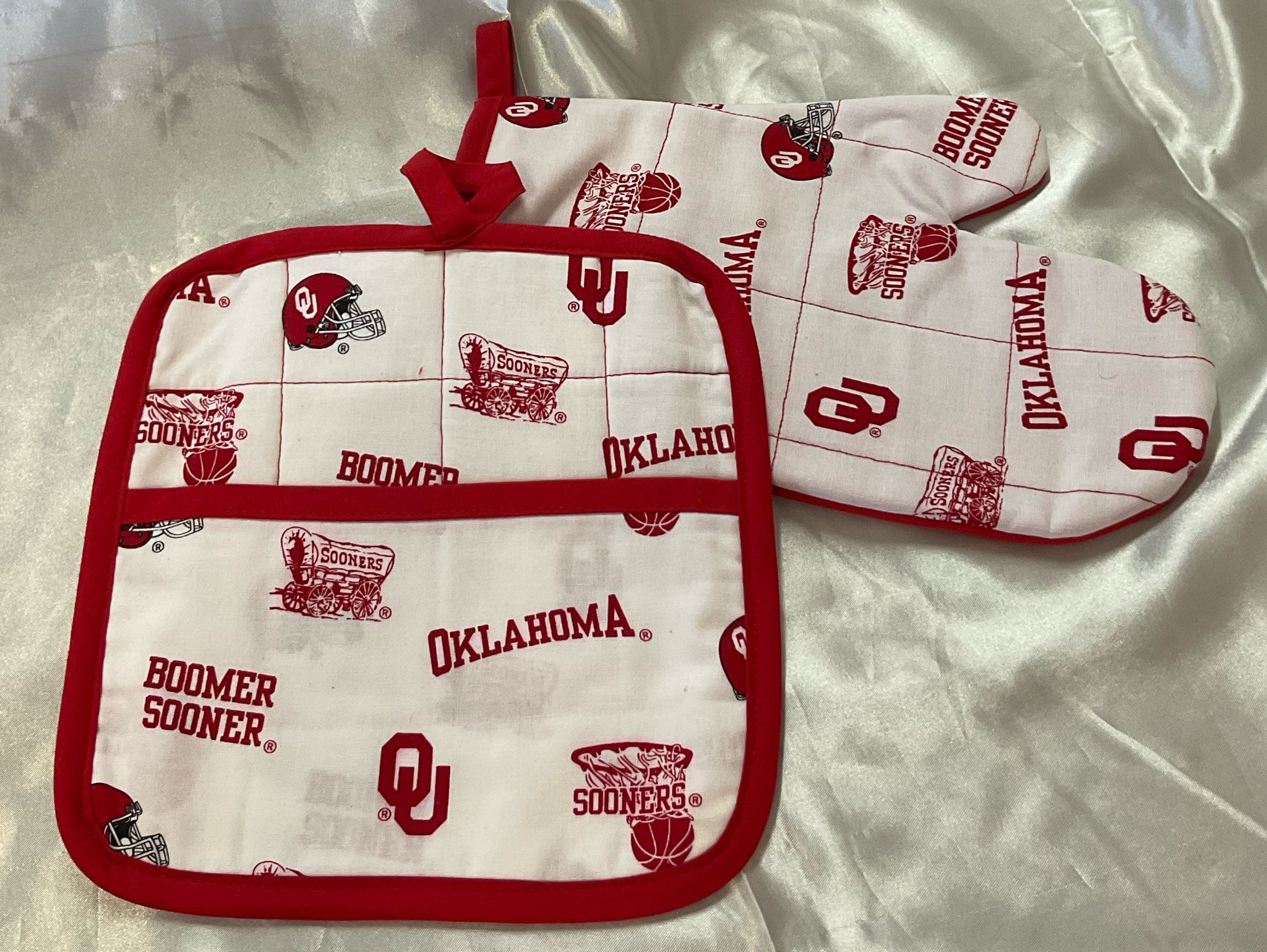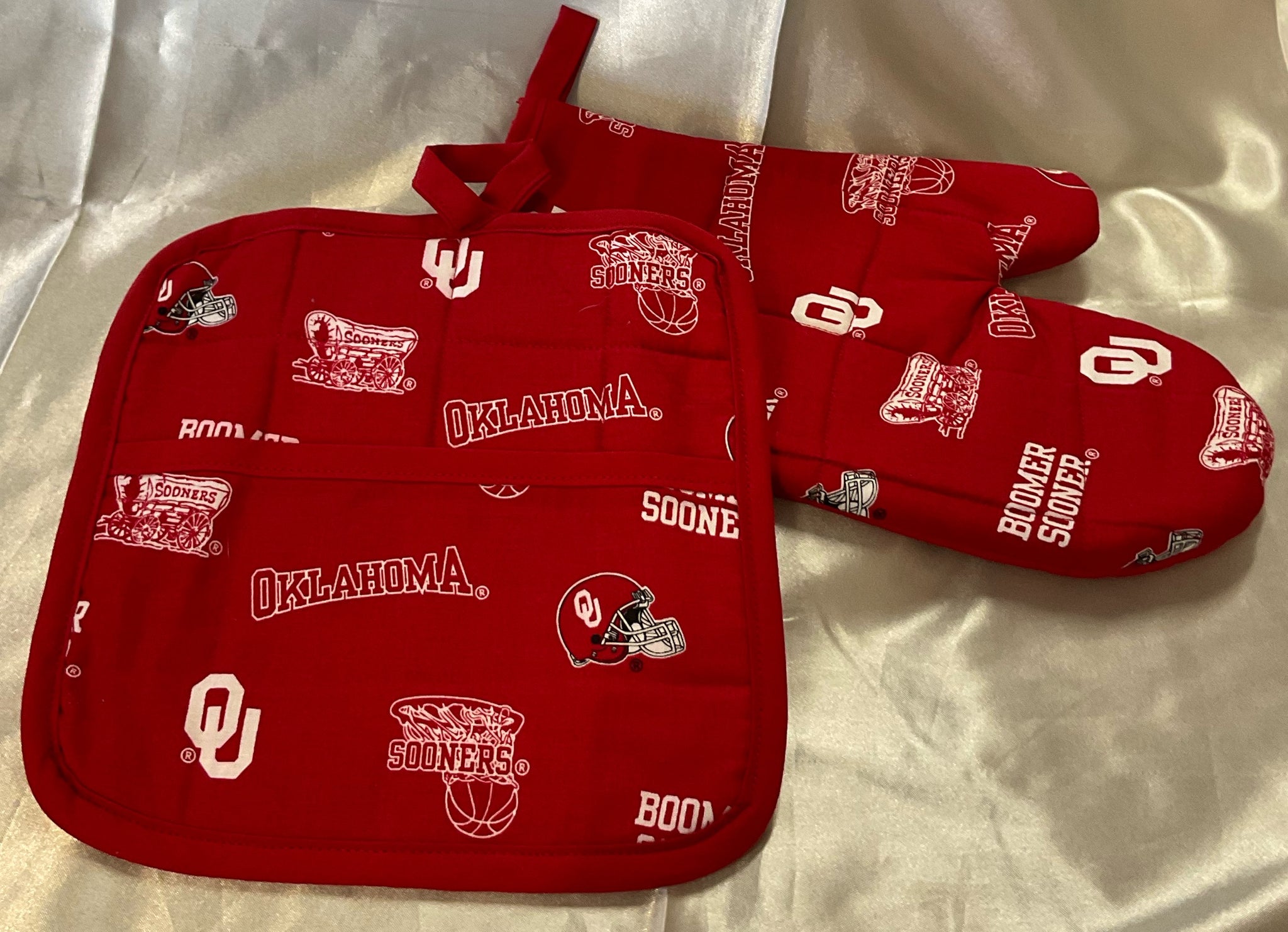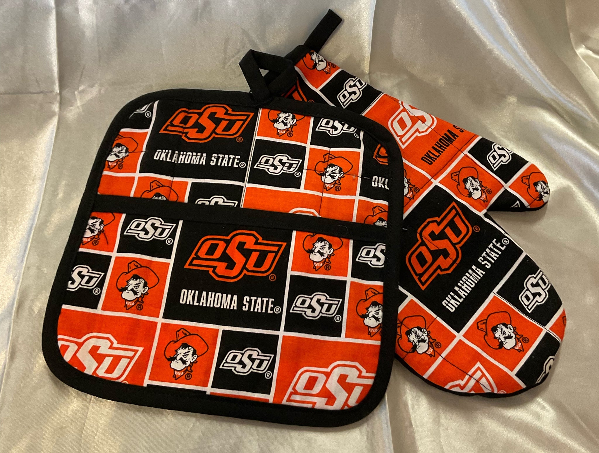 Handmade oven mit and potholder set