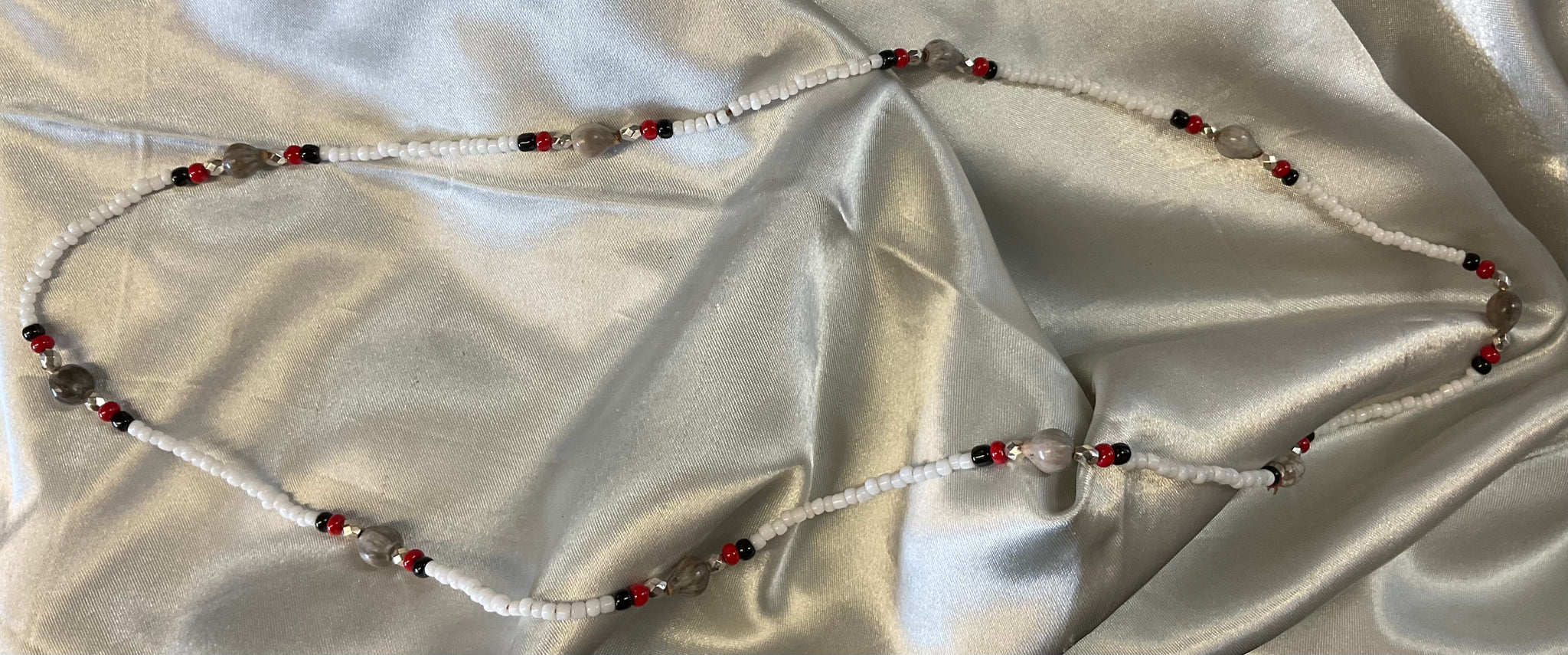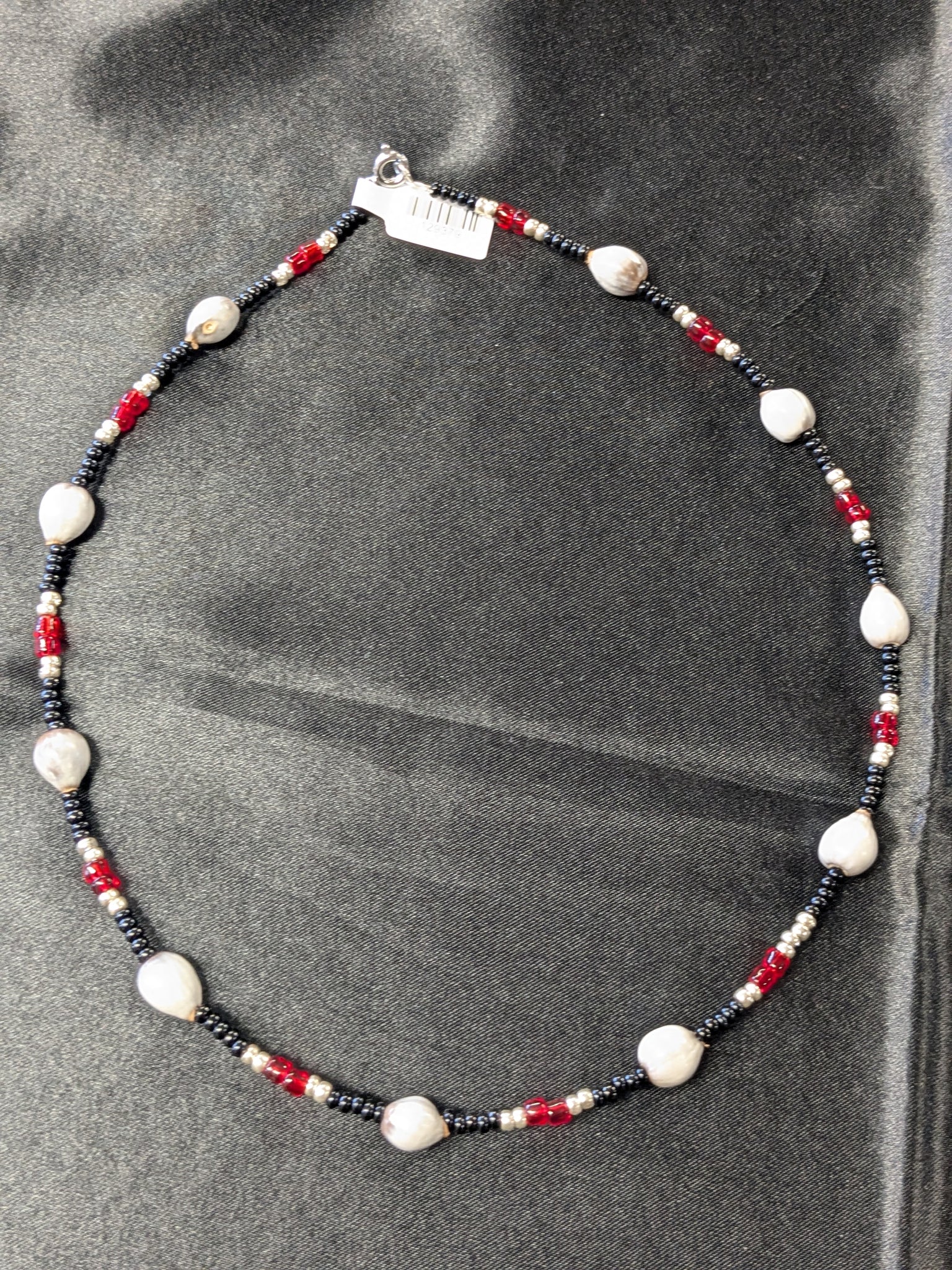 Get ready to spice up your wardrobe with our Corn Bead Necklace! This playful piece features 18" of fiery red and sleek black beads. Perfect for adding a pop of color to your outfit.