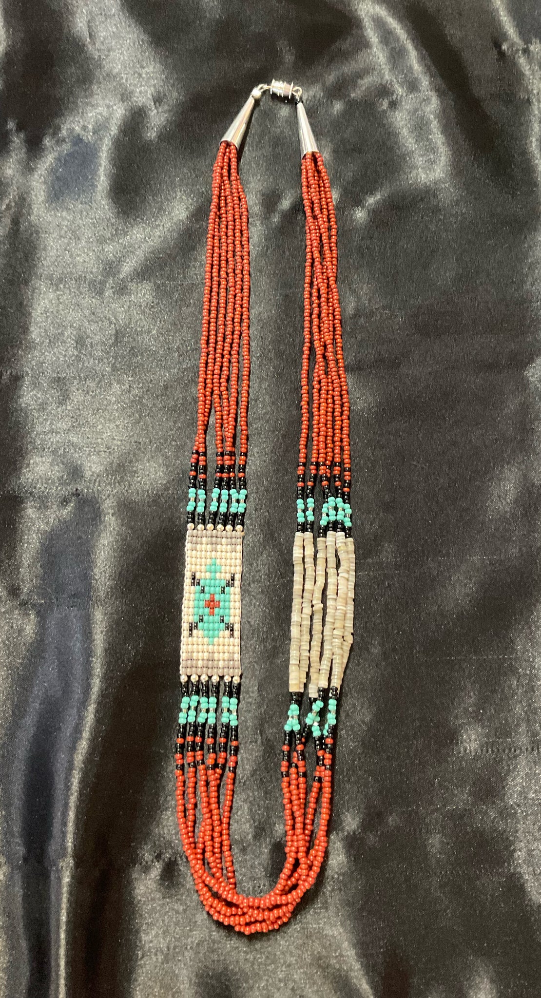 Experience the beauty of Navajo culture with our exquisitely handcrafted beaded necklaces. Each piece is a stunning representation of Navajo design, making it a unique and meaningful addition to your wardrobe. Elevate your style and embrace the rich heritage with our Navajo Beaded Necklaces.