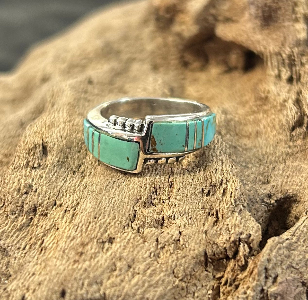 Celebrate authentic craftsmanship with this Candaleria Turquoise Sterling Silver Ring, proudly made by Native American artisans. Each piece showcases genuine turquoise paired with lustrous sterling silver, honoring traditional techniques passed down through generations. The natural character of the stone—with its unique patterns and color variations—ensures your ring is distinctly yours.