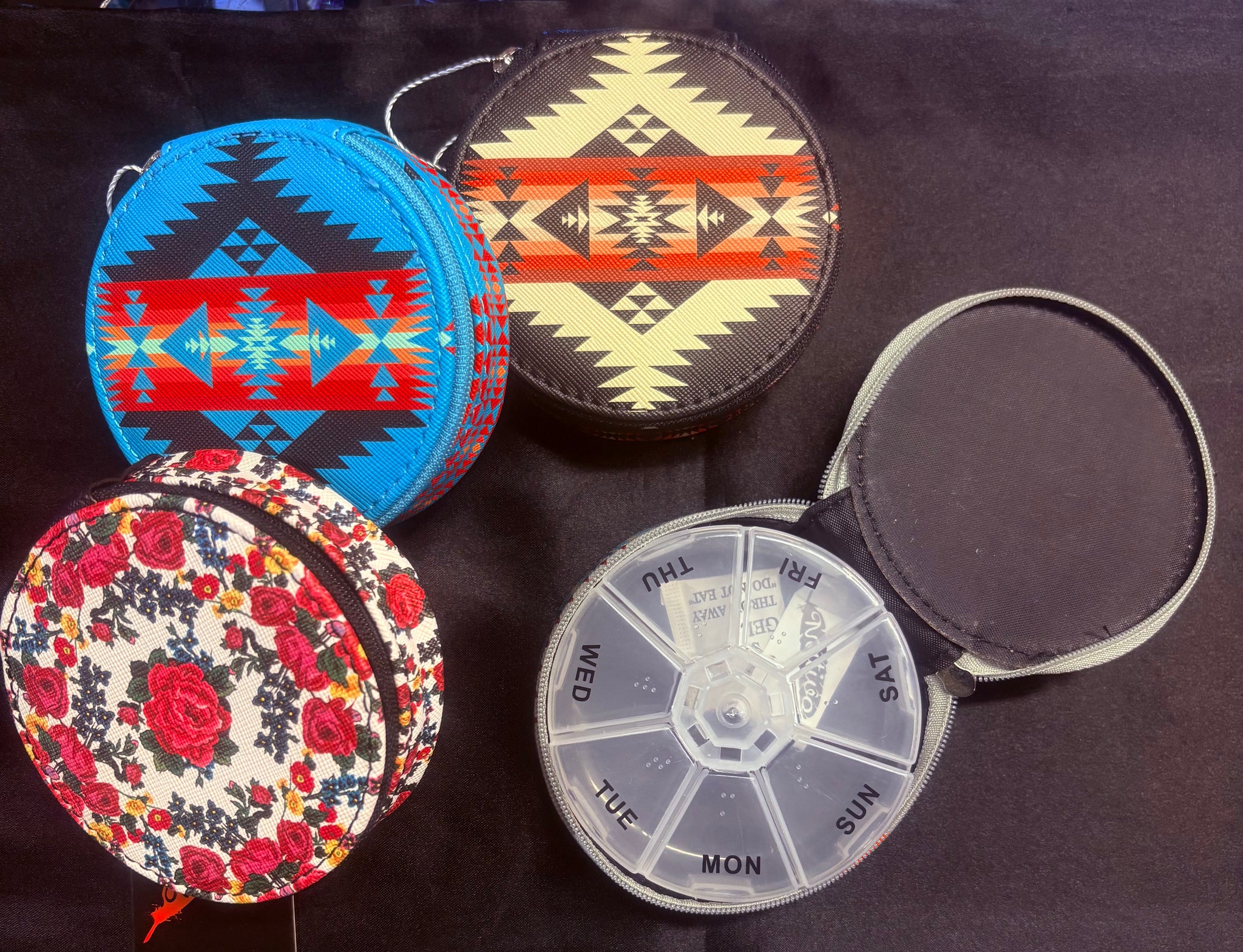 Keep your weekly meds on track with a splash of style! This vibrant Aztec print pill organizer features seven labeled compartments—one for each day—making it impossible to miss a dose. Compact, durable, and way more colorful than your standard pill box, it's the perfect blend of function and flair for anyone who refuses to let health routines be boring.