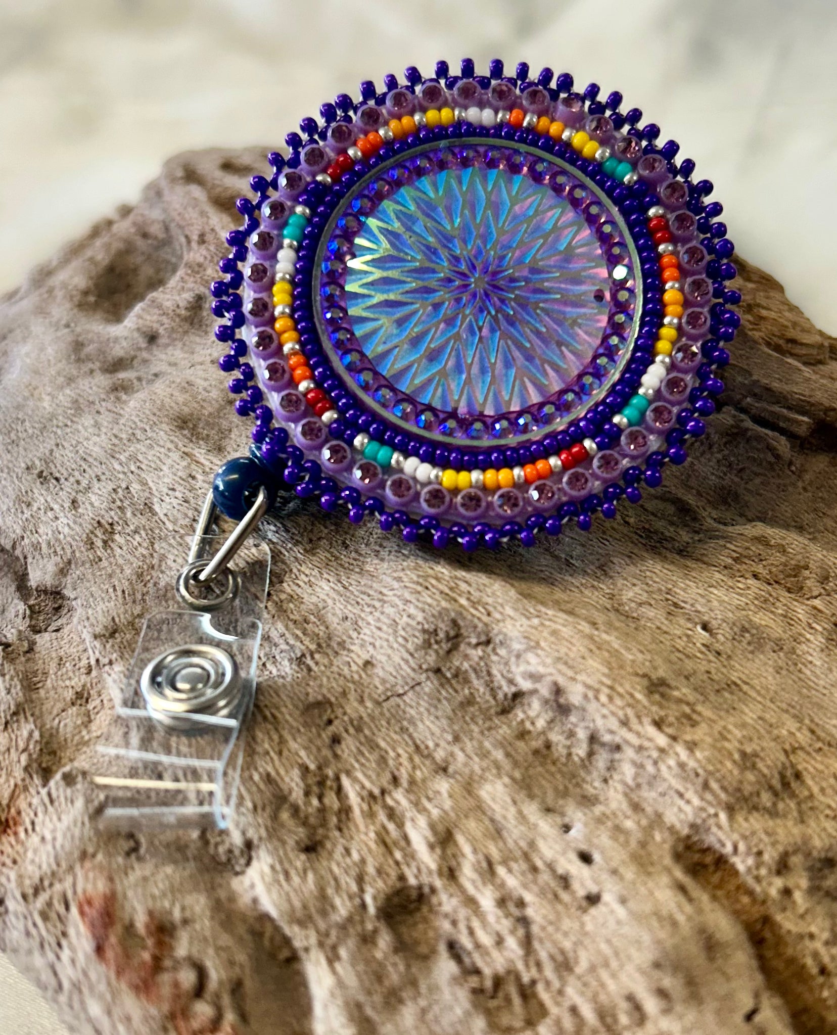 Elevate your office style with our Native-made Beaded Badge Reel! Each bead is handcrafted, giving each reel a unique touch. Stand out with this functional and stylish accessory. Enjoy the convenience of keeping your ID close while adding a pop of color to your day.