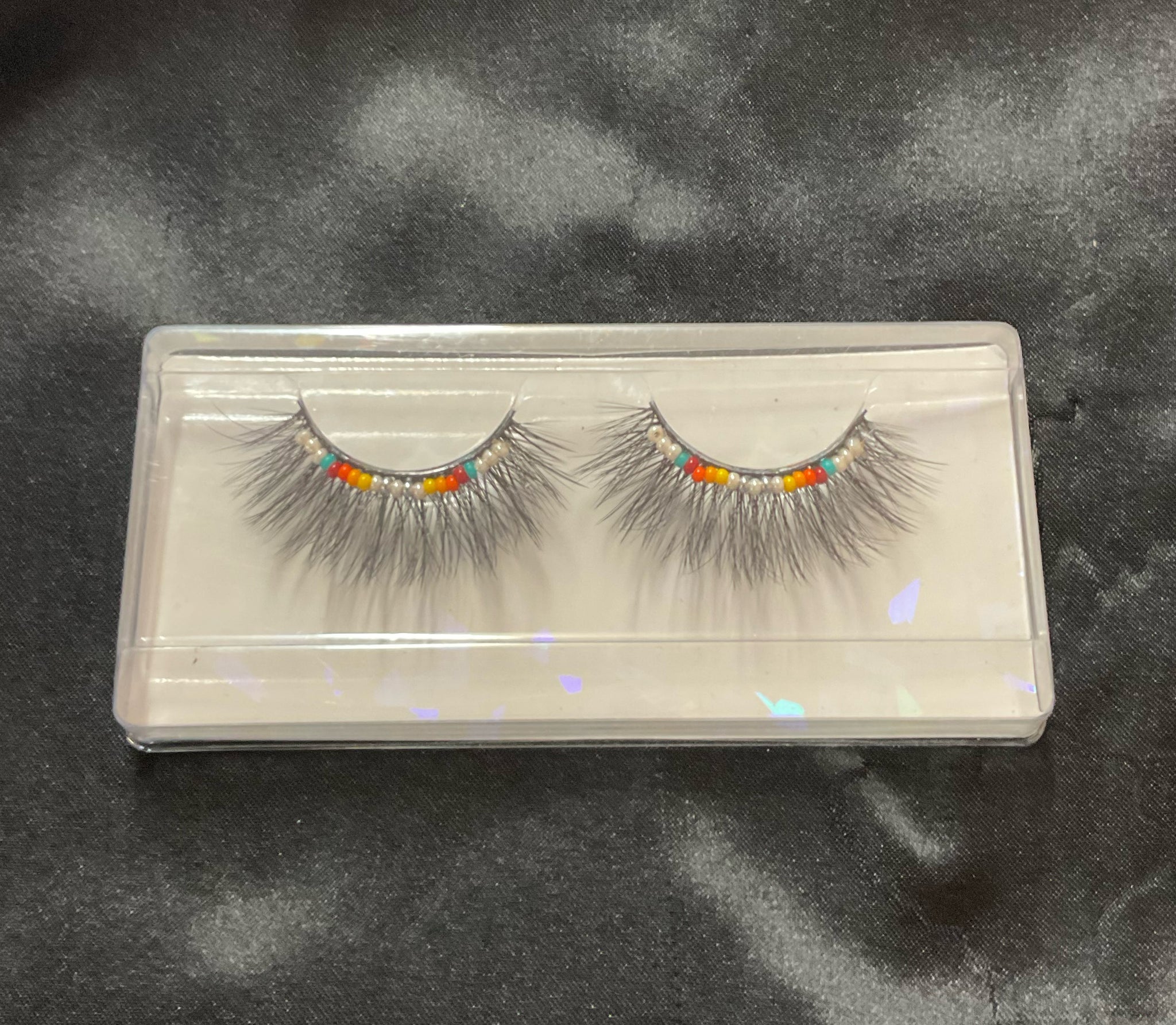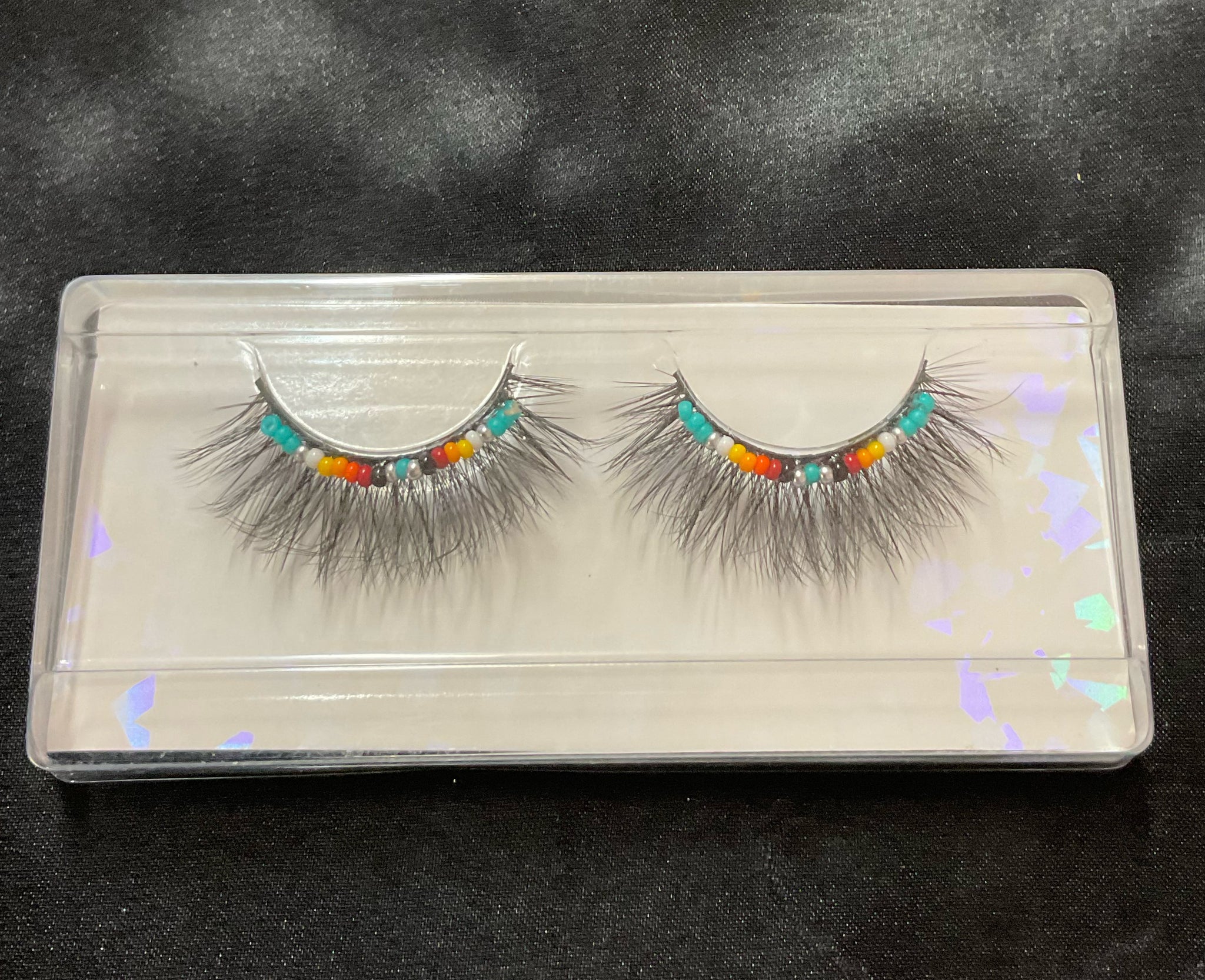 Enhance your natural beauty with our handmade Beaded Eyelashes. Each pair is meticulously crafted by indigenous artisans for a unique and authentic look. Show off your individuality with these Native made lashes. Eye-catching and ethically sourced!