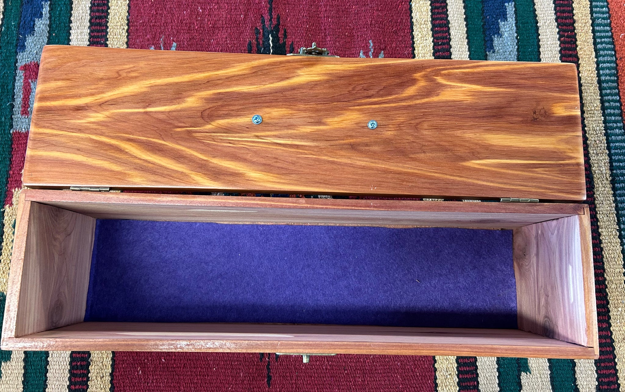 Handcrafted by Native American artisans, this spacious cedar box brings natural beauty and functionality to any space. Measuring 18" long, 4.75" wide, and 6" high with an interior capacity of 17" by 4", it offers generous storage for treasured items, blankets, or collectibles. The aromatic cedar wood naturally repels insects while adding warmth to your home. Each piece celebrates traditional craftsmanship and supports Native American makers. Perfect for those who value authenticity, sustainability, and meaningful home décor.