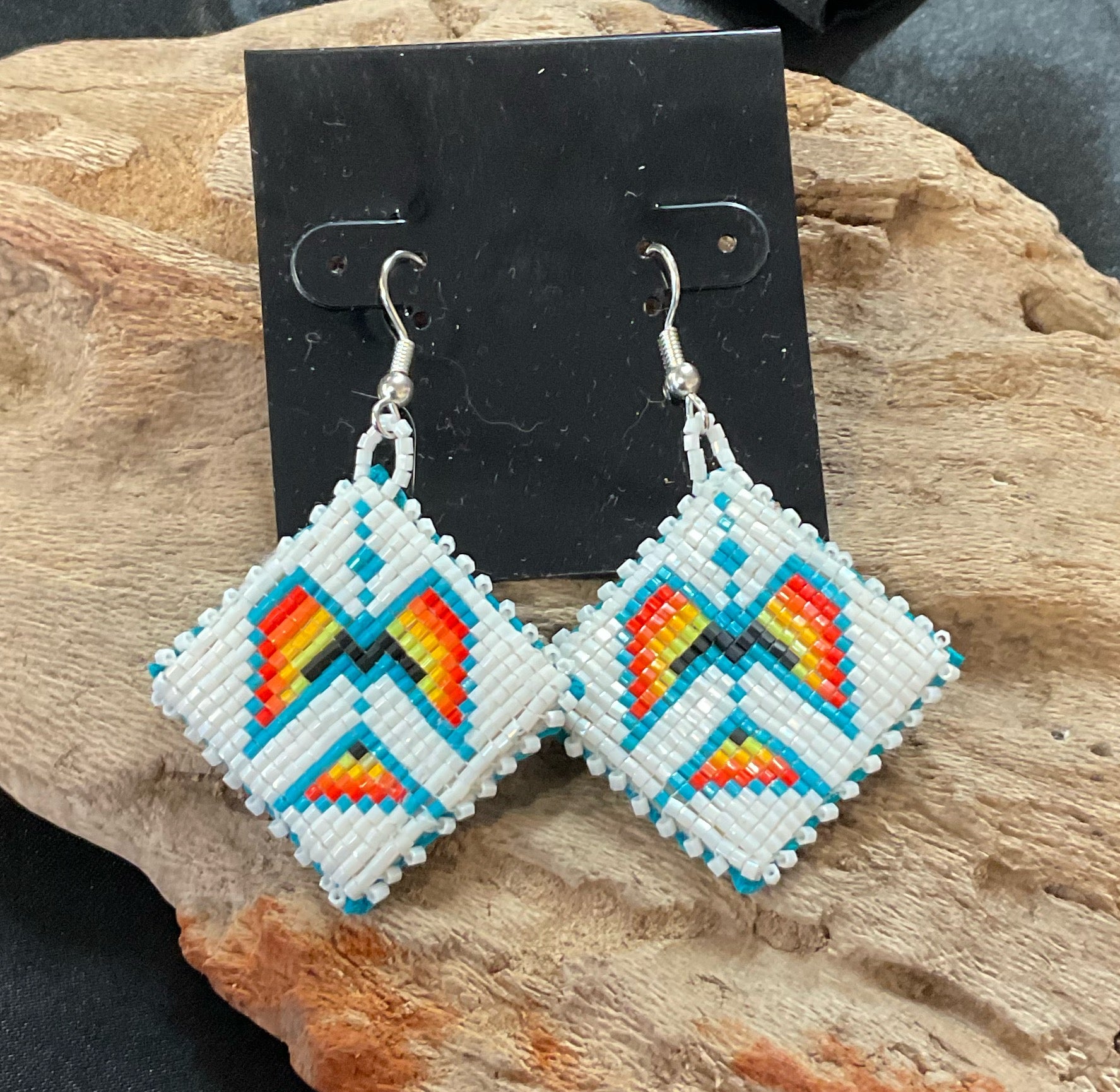 Expertly crafted by Native American artisans, these Delica Beaded Earrings feature shimmering delica style beads that catch the light and add a touch of elegance to any outfit. Hand-beaded with precision and care, these earrings are sure to make a statement and become a cherished addition to your jewelry collection.