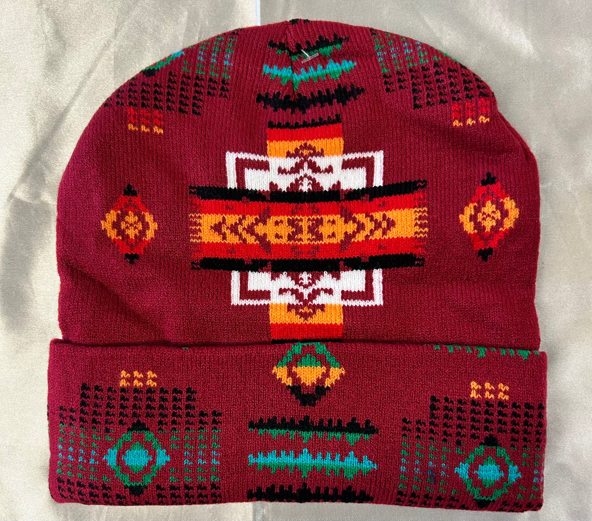 Stay cozy and stylish with our Native Print Beanies. Designed with a native print, these beanies not only keep you warm, but also add a touch of culture to your outfit. Perfect for any winter day, these beanies are a must-have for fashion-forward individuals.